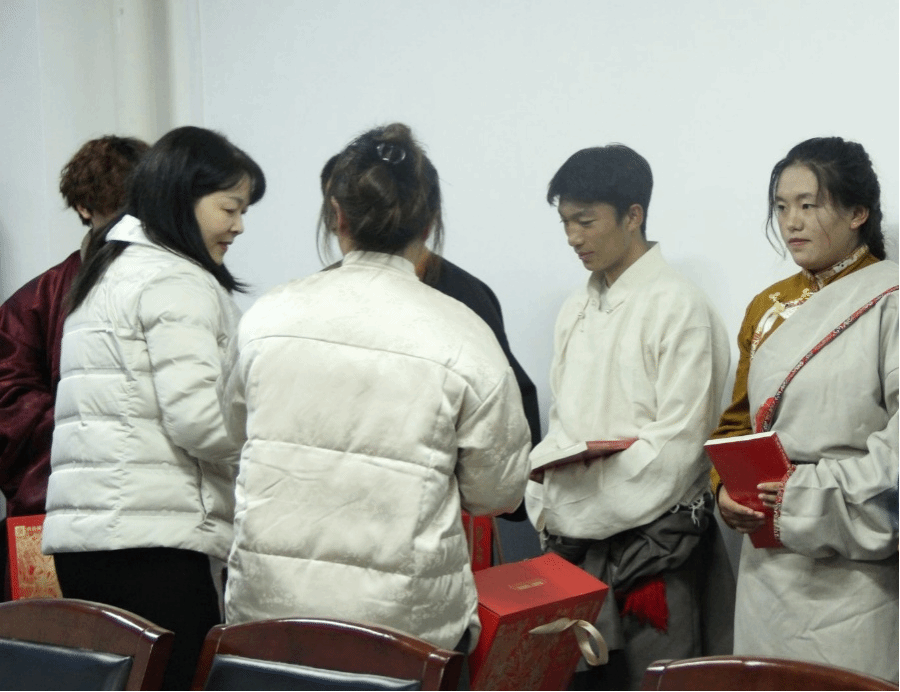 校领导向藏族同学们赠送了新年礼物。最后进行合影留念,用一张张珍贵的照片,定格下“民族团结一家亲”的难忘时刻。