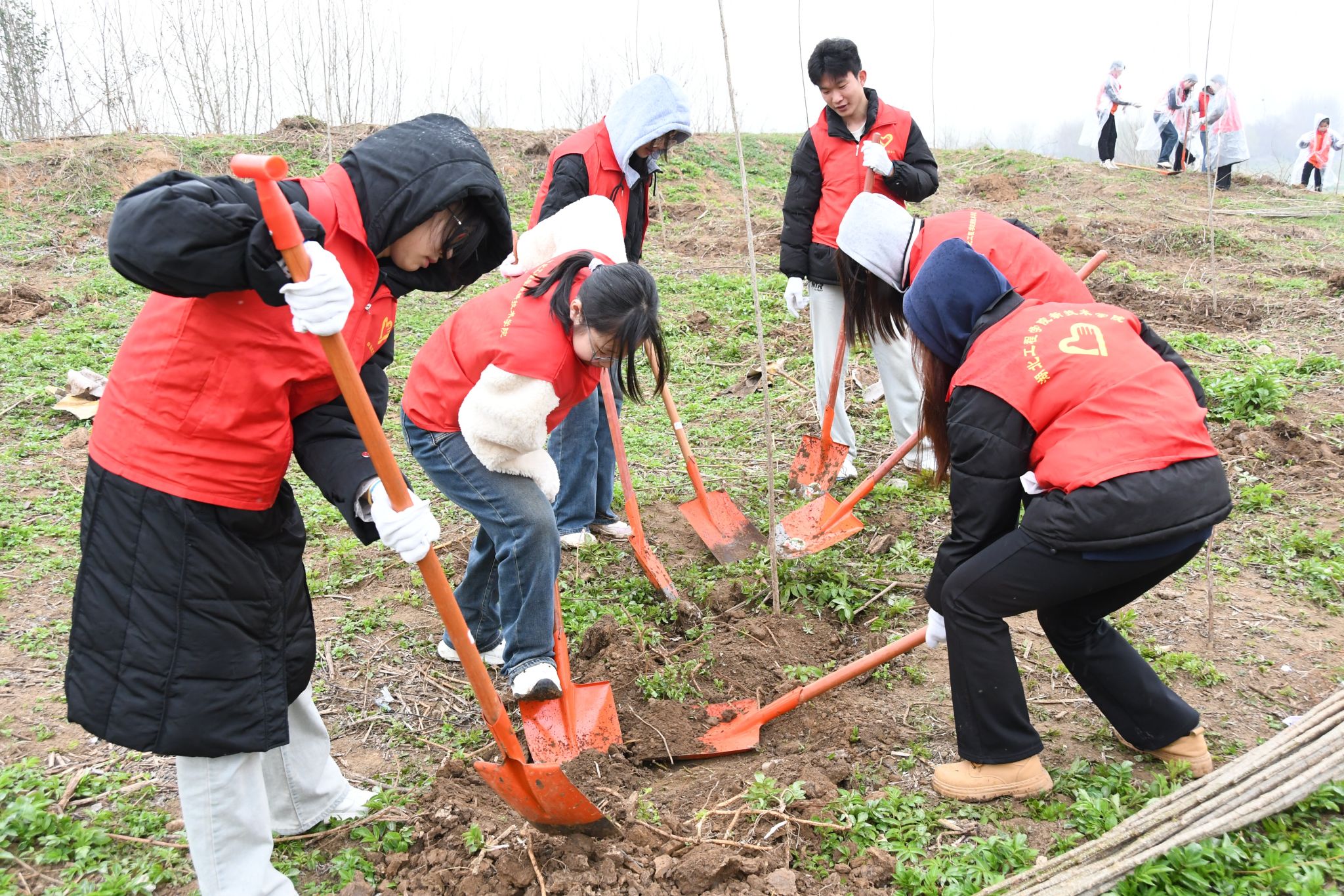 3月9日上午,春雨绵绵,空气中弥漫着清新泥土的气息,公司“田强”青年志愿服务队队员们满怀热情,冒着蒙蒙细雨,准时在校门口集合,登上大巴,踏上了前往云梦县清明河乡清明河中学植树点的行程。一路上,大家欢声笑语,充满了对即将到来植树活动的期待。