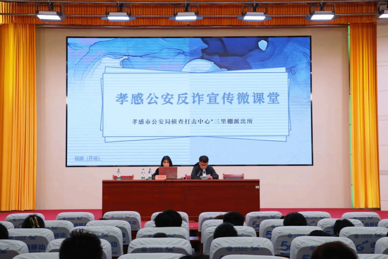 本次微课堂活动特邀孝感市公安局孝南分局三里棚派出所反电诈专家熊瑞雪警官担任主讲人。熊警官以典型案例剖析为切入点,通过"以案释法+情景推演"的宣讲模式,瞬间吸引了全场师生的注意。活动伊始,熊警官播放了多个禁毒反诈宣传短片,内容涵盖禁毒反诈、电诈绑架、刷单骗局等多个方面,以真实案例和情景再现的形式,让同学们更加直观地感受到了吸毒和诈骗的危害及犯罪手段的多样性。