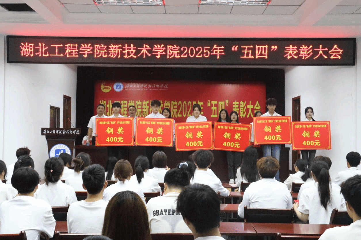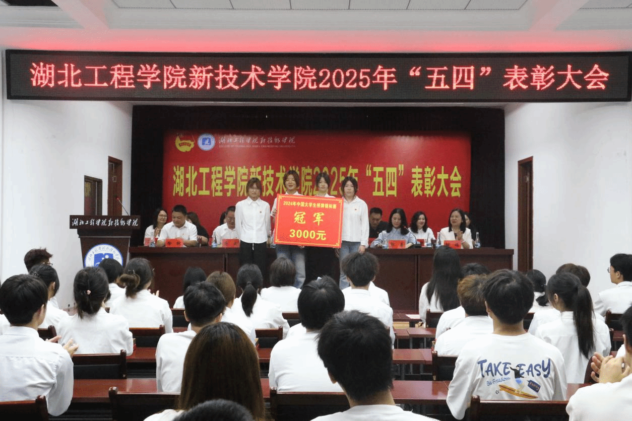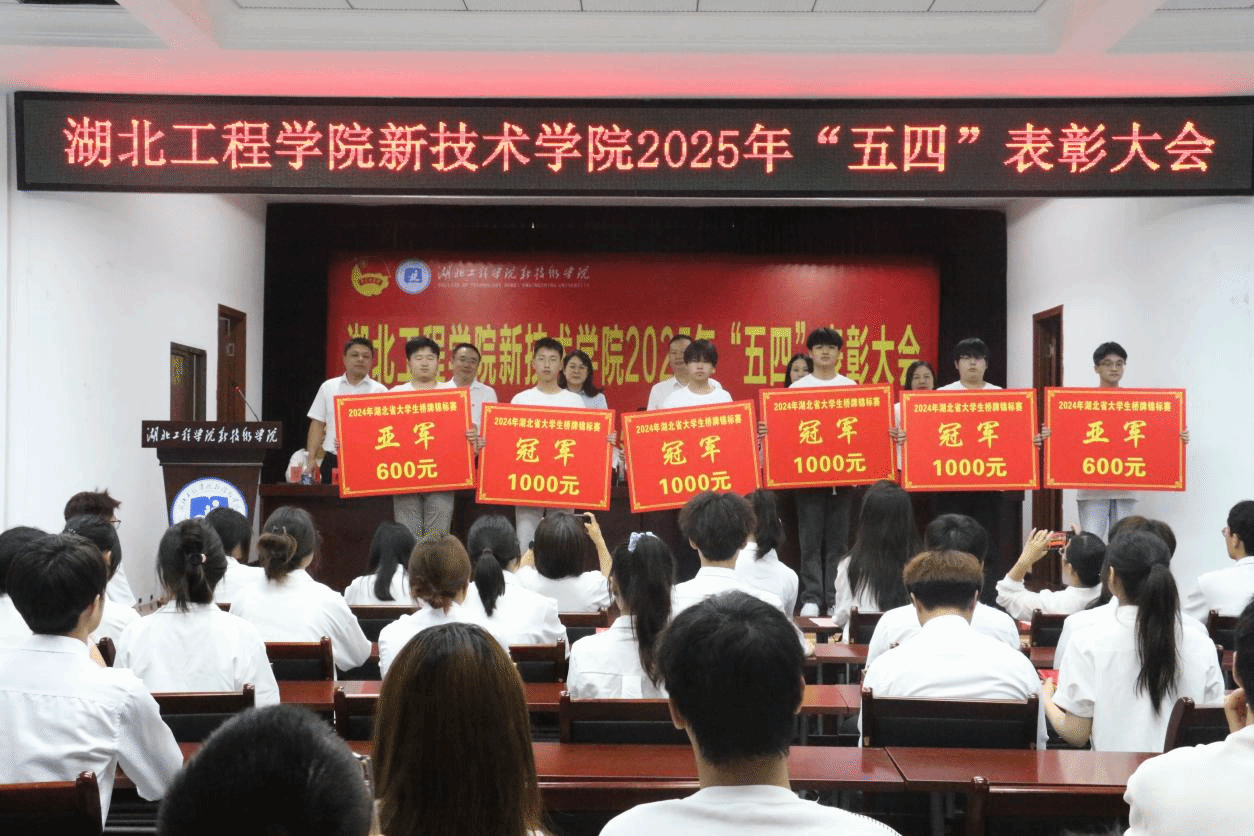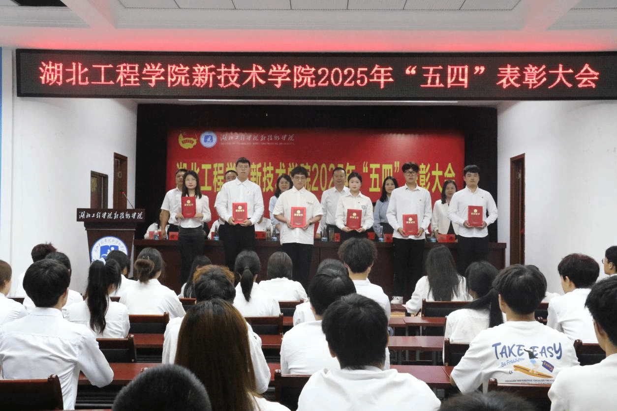校领导为荣获2024-2025学年度优秀团干部、优秀团员、优秀青年志愿者代表、先进团支部代表、第八届“我身边的好团支书”代表、优秀“红旗团总支”代表、优秀“田强”青年志愿服务队分队代表及在省级以上竞赛中获奖的集体和个人颁奖。